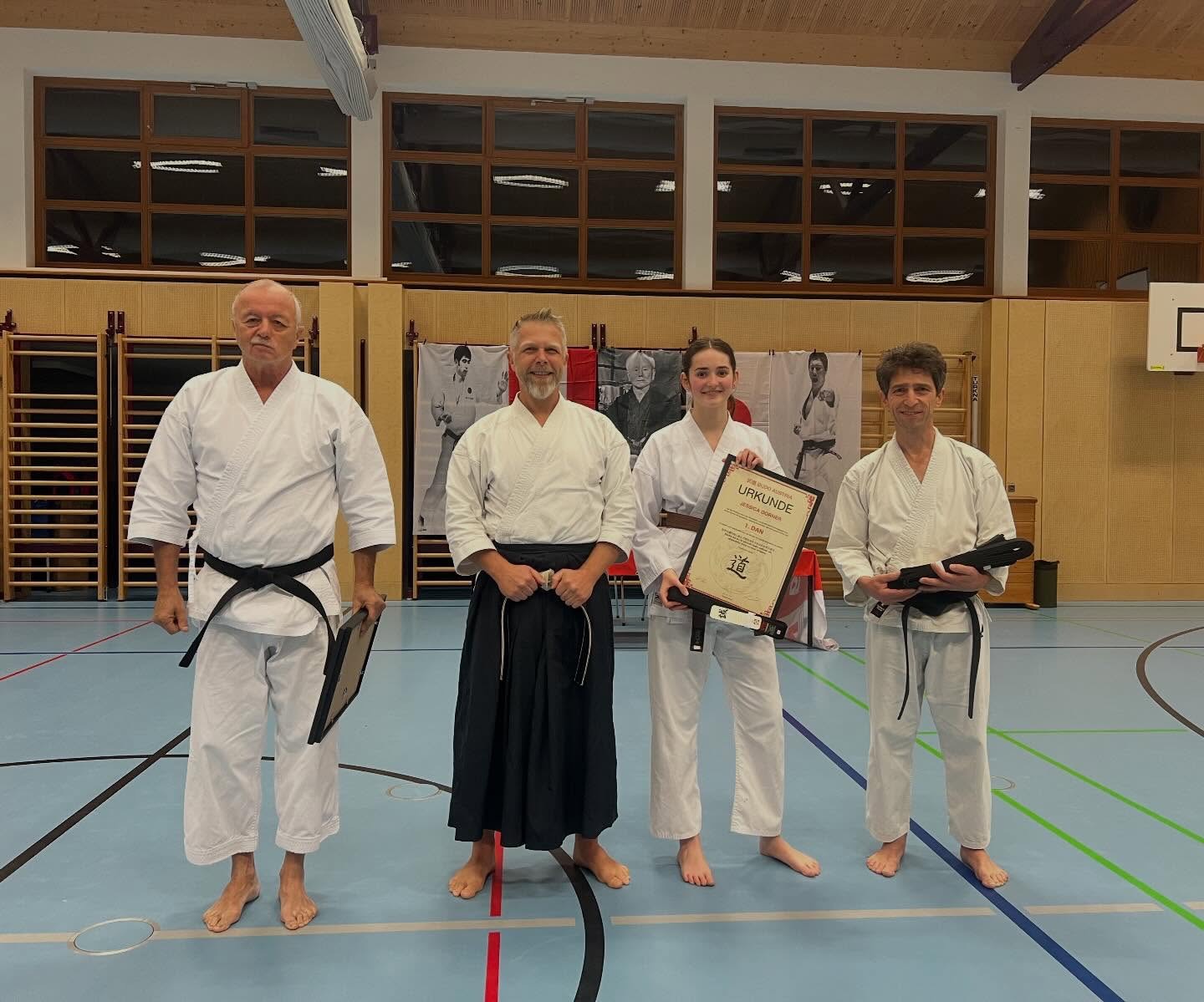 Ein ganz besonderer Höhepunkt war außerdem die Verleihung von vier neuen Schwarzgurten. Albrecht, Jessica, Manuel und Patrick haben sich über viele Jahre hinweg mit außergewöhnlicher Hingabe vorbereitet und vergangene Woche erfolgreich die Prüfung zum 1. Dan bestanden. Nur wenige Sportler bringen die Ausdauer und Leidenschaft mit, um diesen Weg zu gehen. Doch für einen wahren Karateka ist der Schwarze Gürtel erst der Anfang einer langen Reise – hier beginnt das echte Karate.